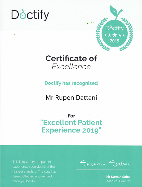 Mr Rupen Dattani gained his medical degree from the University of Wales and completed his Orthopaedic training on the South West Thames specialist registrar programme. He obtained a doctorate of medicine (MD) in orthopaedics at University College London. Mr Dattani was awarded two prestigious fellowships in shoulder and elbow surgery, one working with Mr. Graham Tytherleigh-Strong in Cambridge and the other at the internationally renowned Reading Shoulder Unit working with Professor Ofer Levy. Mr Dattani has also completed a trauma fellowship at a Level I trauma centre in Vancouver, Canada. These fellowships have provided Mr Dattani with a highly specialised clinical practice, exclusively in shoulder and elbow arthroscopic (keyhole) and arthroplasty (joint replacement) surgery as well as surgery for fractures around the shoulder and elbow joints. Mr Dattani has always had a strong research ethic and believes that the high quality of medical care we enjoy today has only been achieved through well controlled research. Mr Dattani has published over 20 articles in peer reviewed journals and has presented his work at both national and international conferences. His main research interests are in assessing patient outcomes following shoulder surgery. Mr Dattani is an author of a book used for teaching and training of surgeons in training and has also authored book chapters in orthopaedics textbooks.
